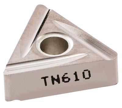 Newly designed chipbreaker targets to minimize trouble in Aluminum alloy turning can help to obtain high quality finishing process. Available in single sided inserts.