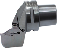 Coolant is directed from the rake surface and the flank face of the insert. Improved chip control and longer tool life for external grooving and cutting-off.